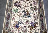 فرش دستباف قالیچه قم (نقشه شکارگاه کرم)