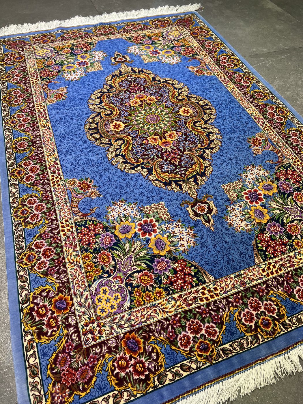 فرش دستباف ذرع و نیم قم (نقشه لچک ترنج آبی)