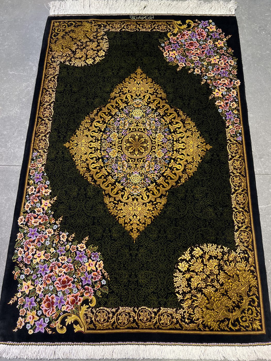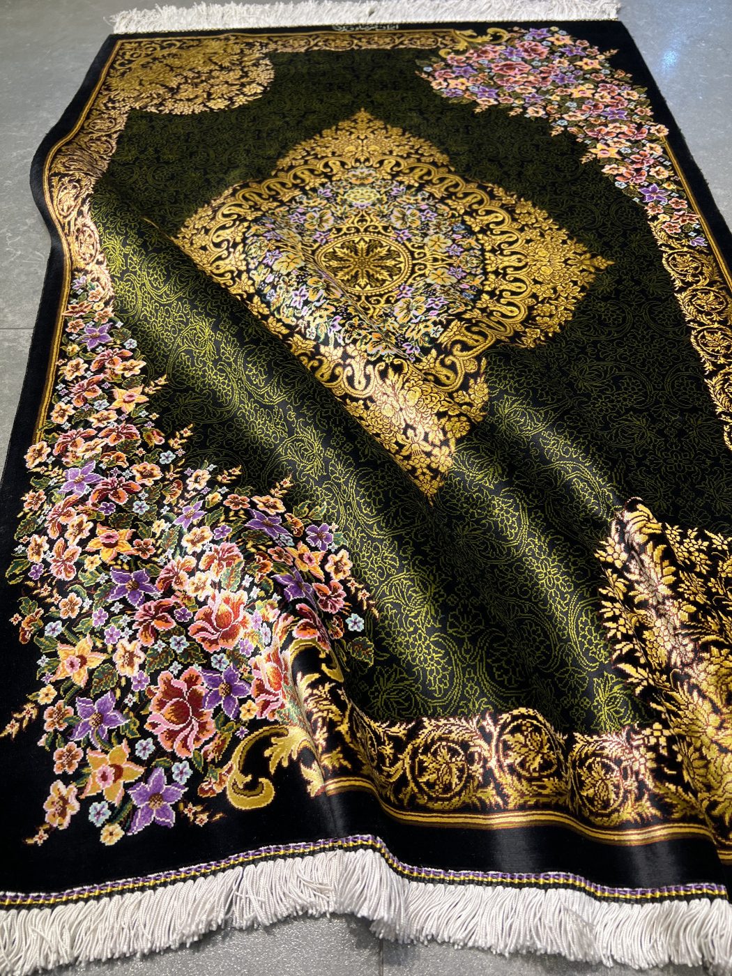 فرش دستباف ذرع و چارک قم (نقشه گلریز سبز)