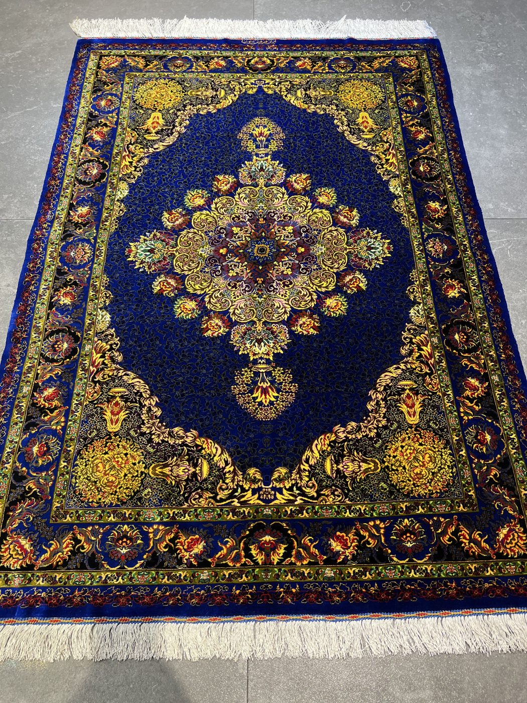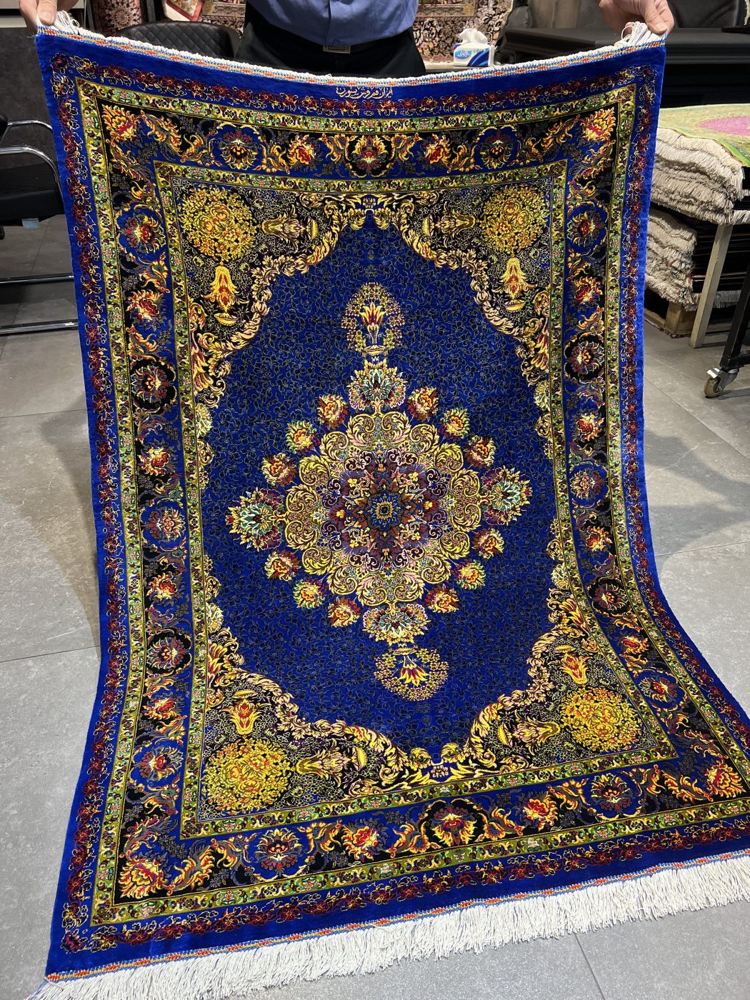 فرش دستباف ذرع و نیم قم (نقشه گلریز آبی)