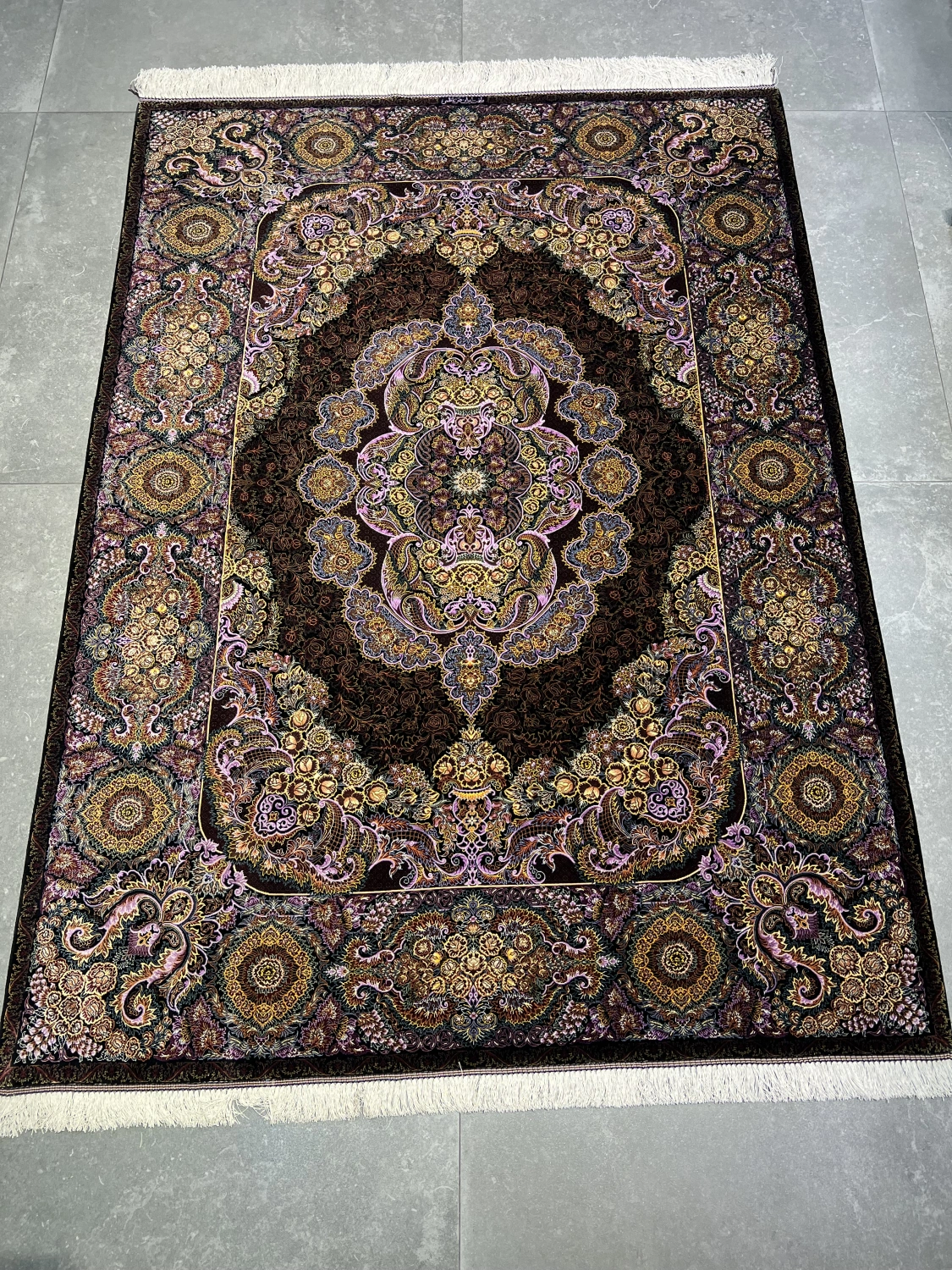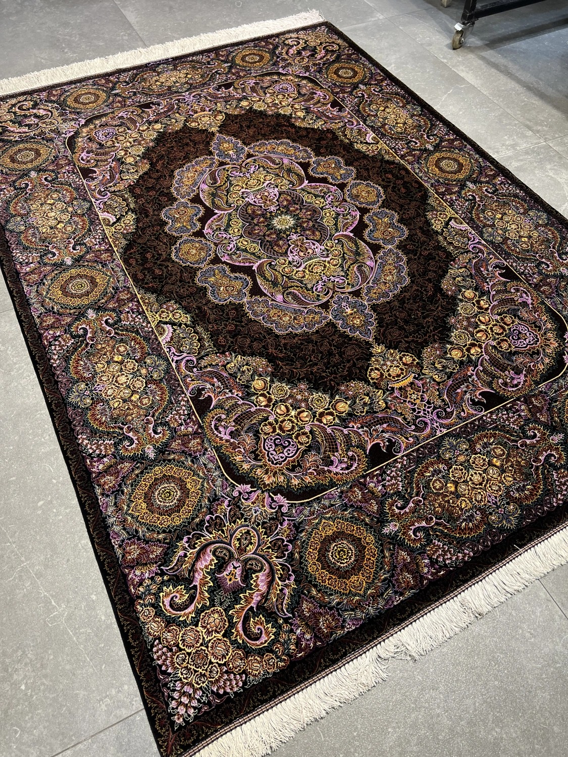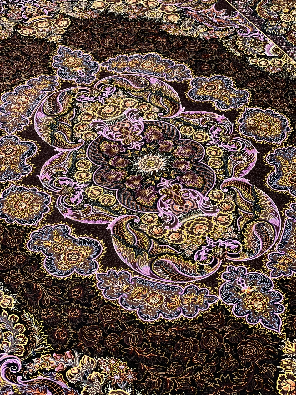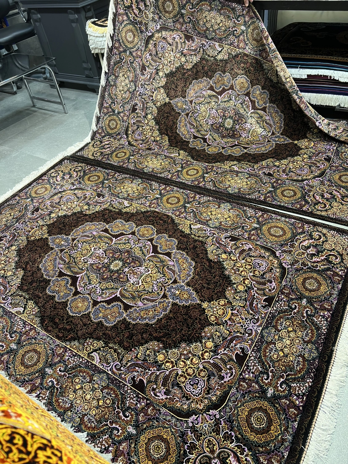 فرش دستباف جفت قالیچه قم (نقشه گلریز قهوه ای)