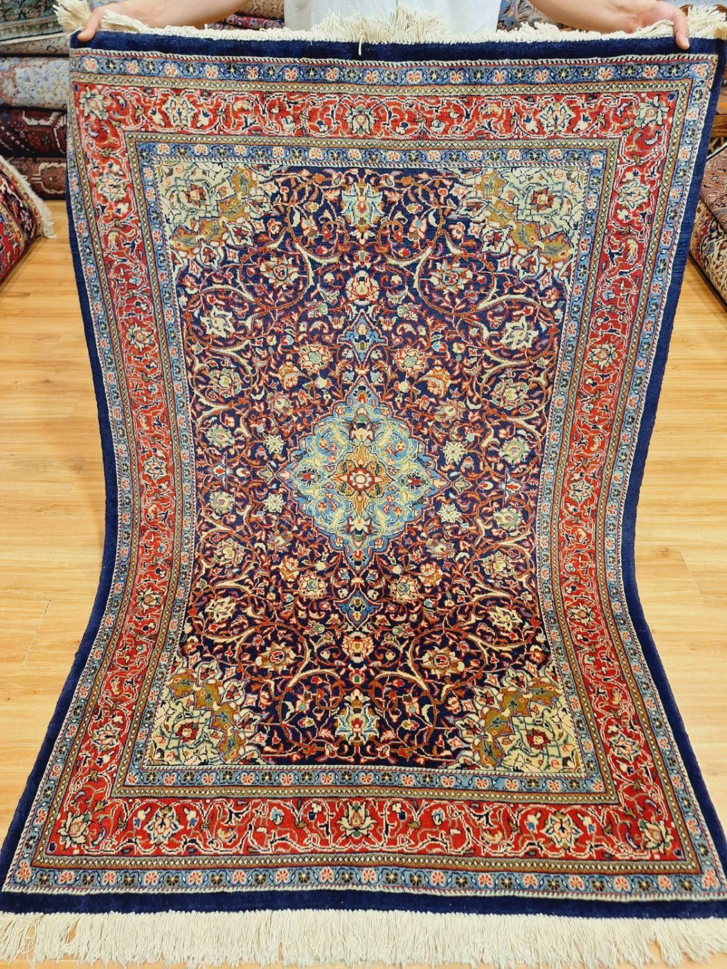 فرش دستباف قالیچه ساروق (نقشه لچک ترنج سرمهای)