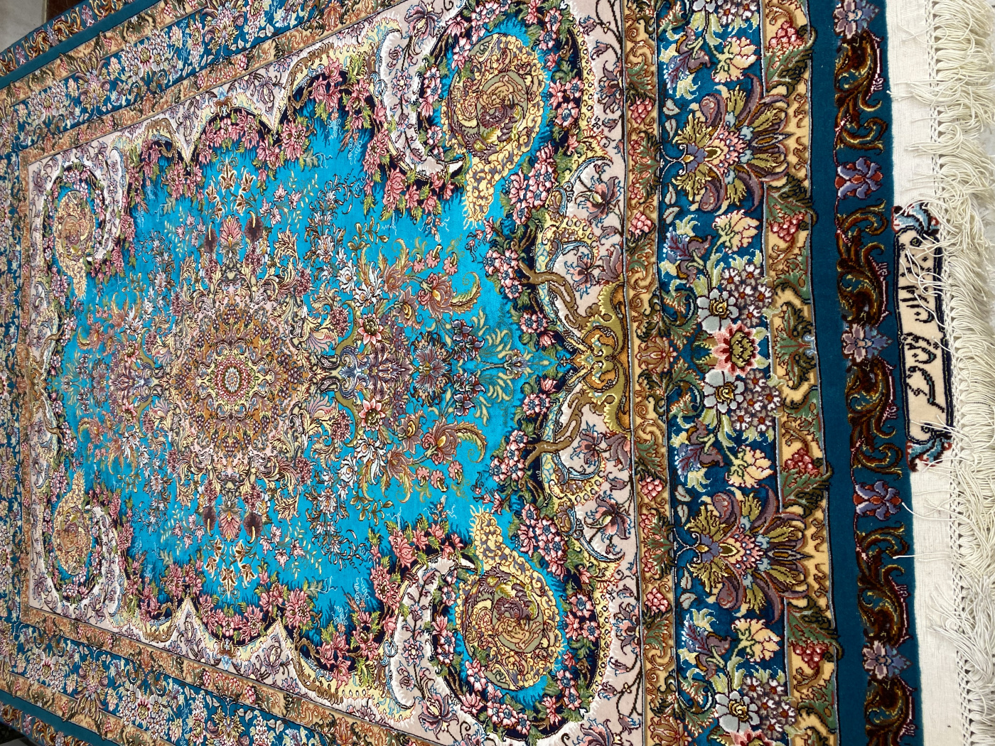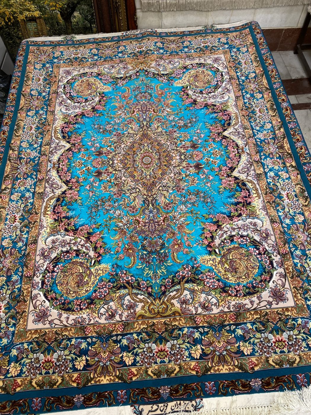 فرش دستباف قالیچه تبریز (نقشه لچک ترنج آبی)