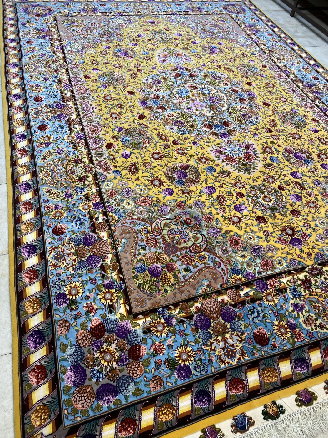 فرش دستباف جفت نه متری تبریز (نقشه ترنج دار زرد)