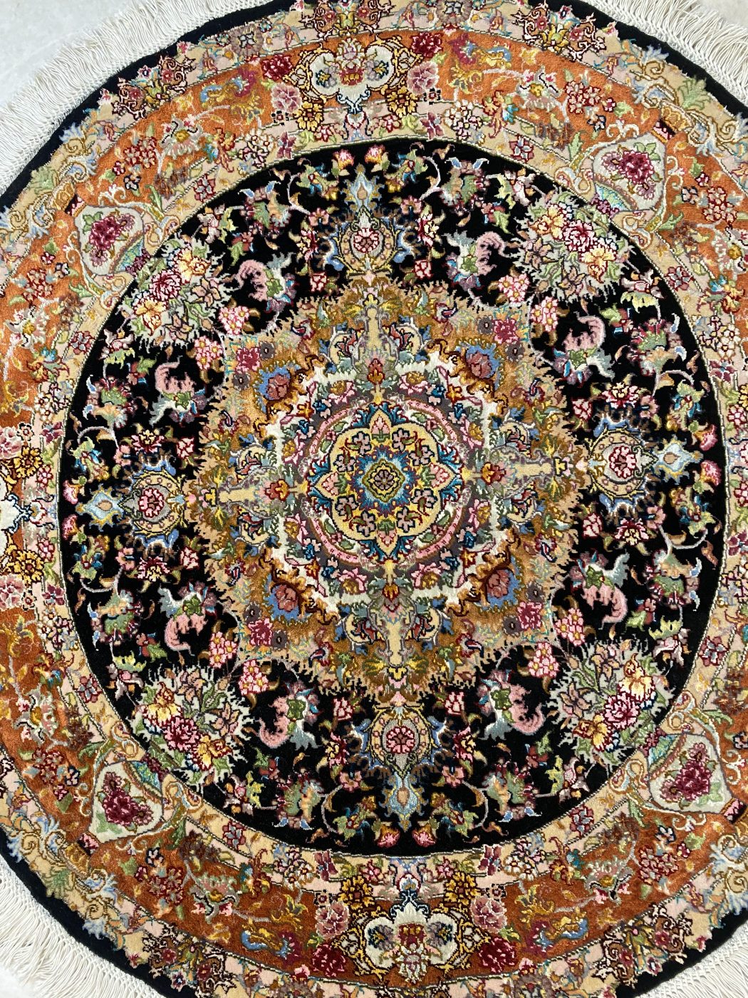 فرش دستباف گرد تبریز (نقشه خطیبی مشکی)