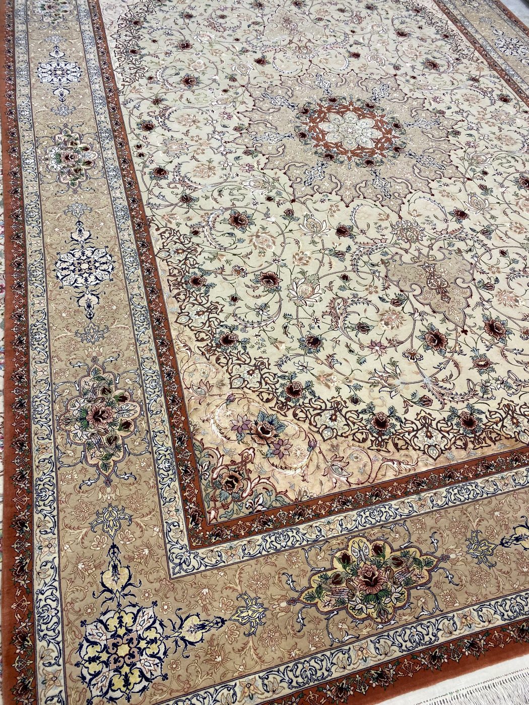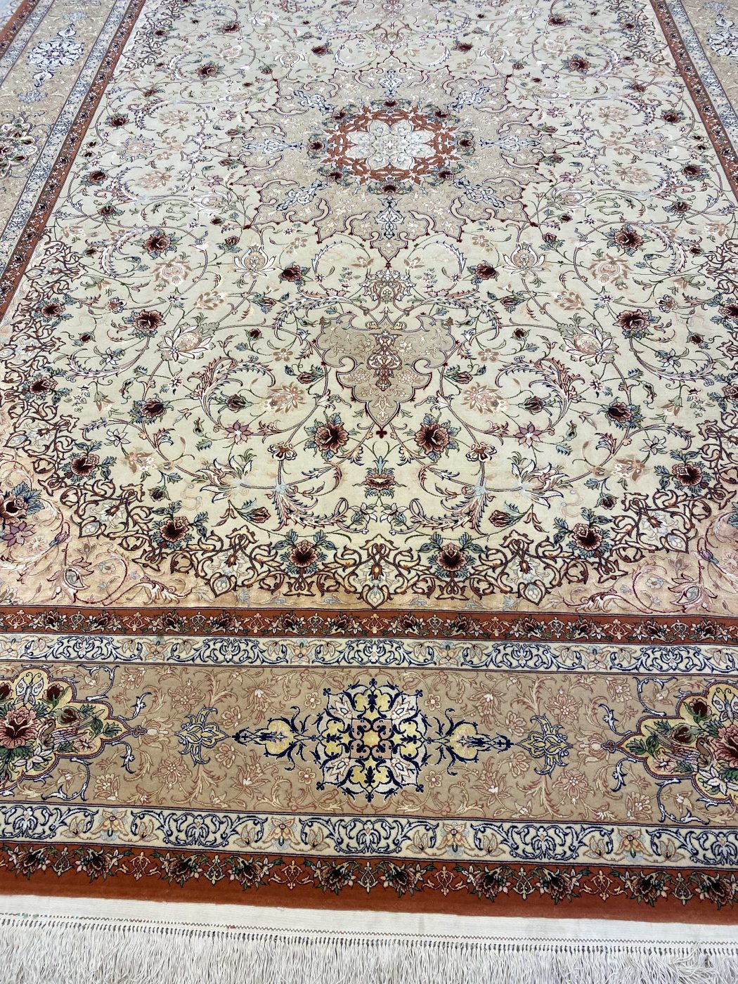 فرش دستباف جفت شش متری تبریز (نقشه لچک ترنج کرم)