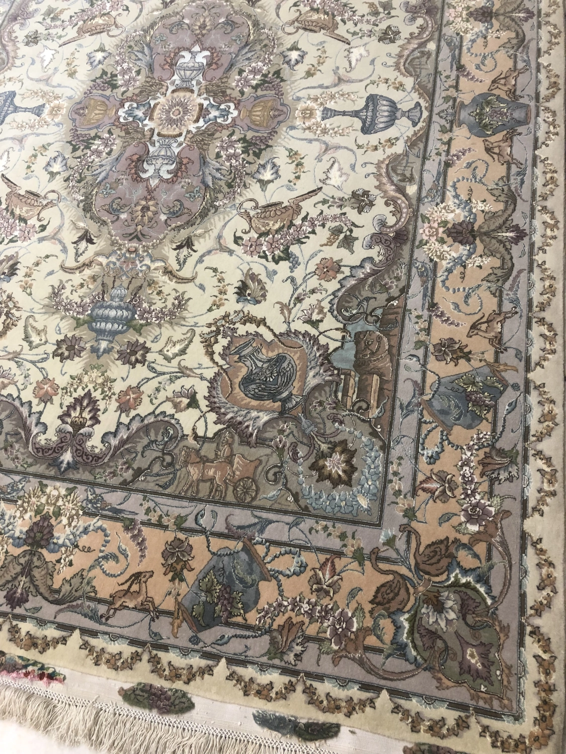 فرش دستباف جفت قالیچه تبریز (نقشه لچک ترنج کرم)