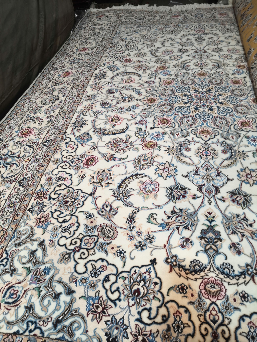 فرش دستباف شش متری نایین (نقشه لچک ترنج کرم)