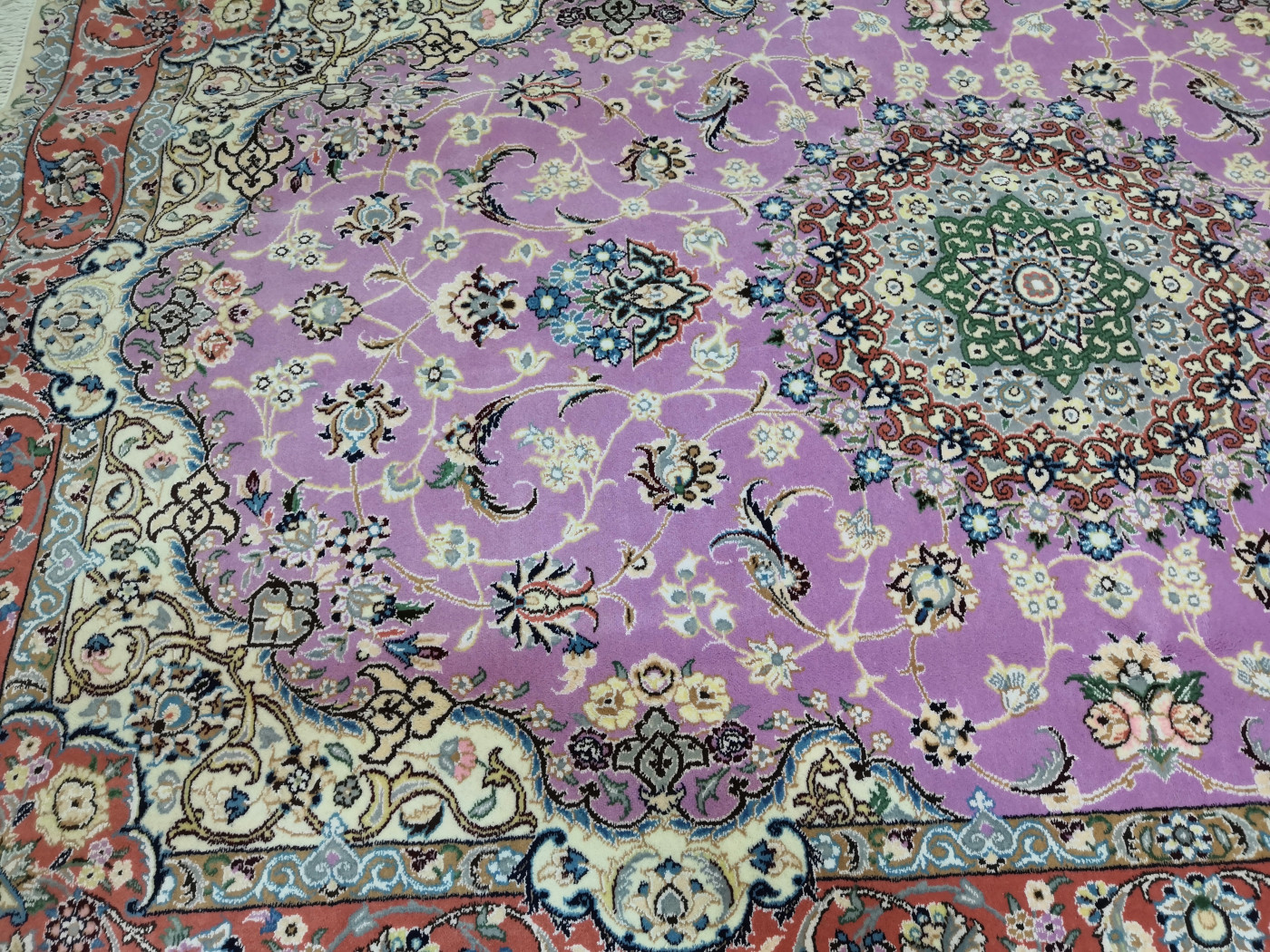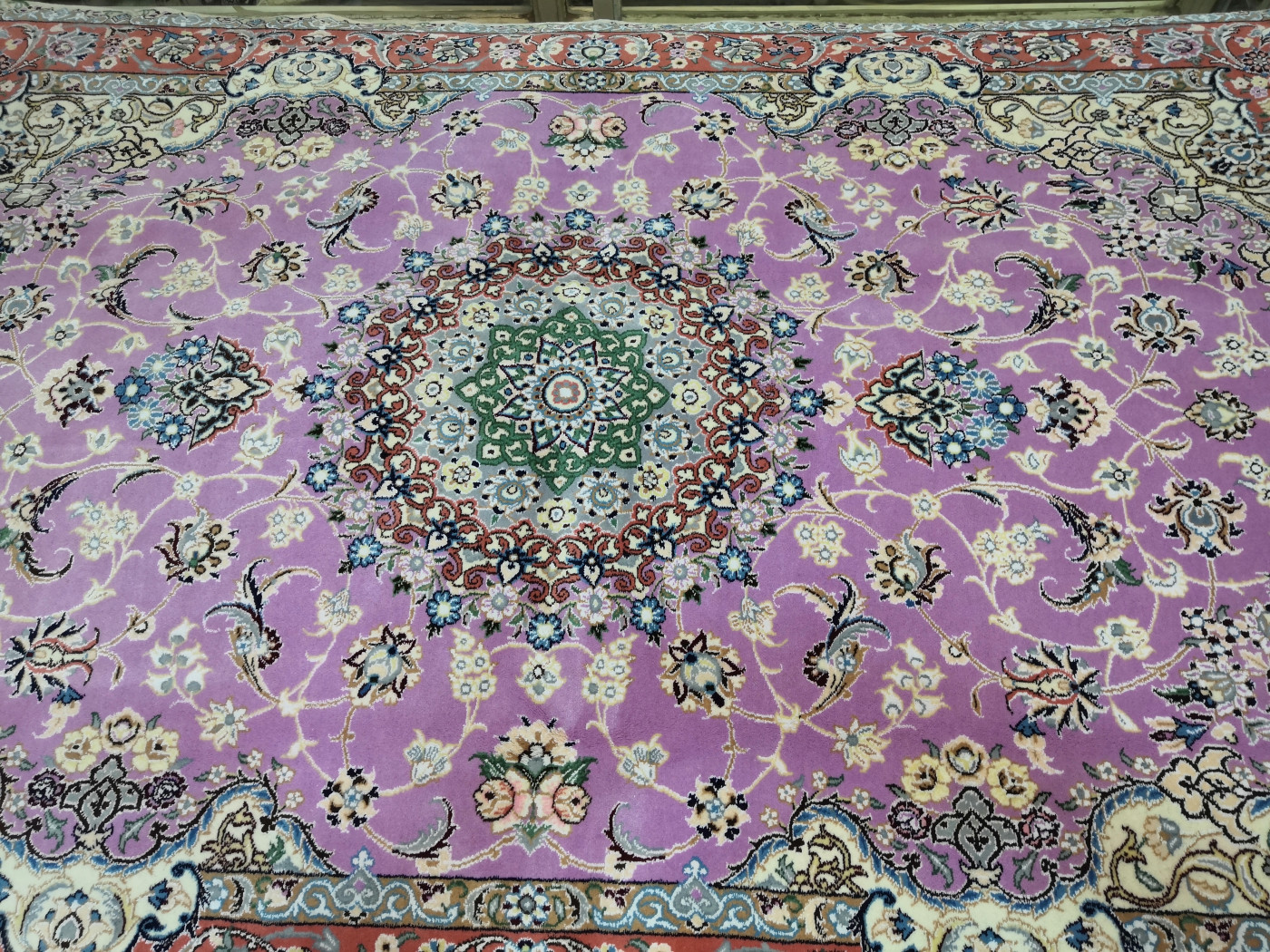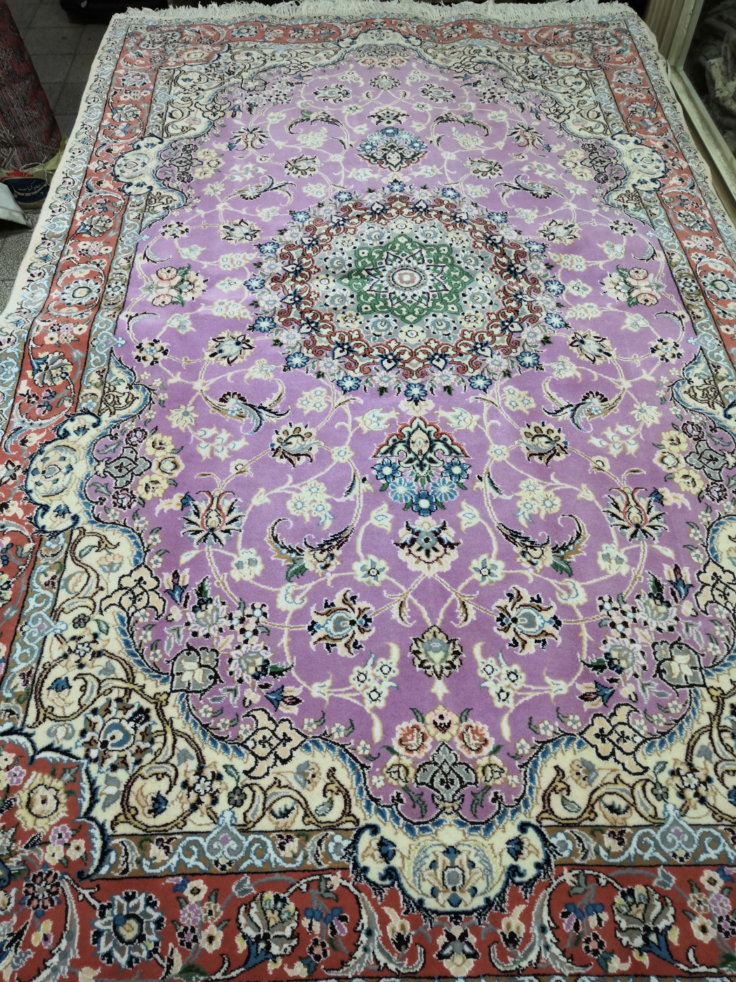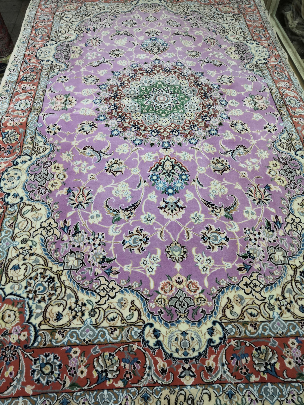 فرش دستباف قالیچه نایین (نقشه لچک ترنج صورتی)