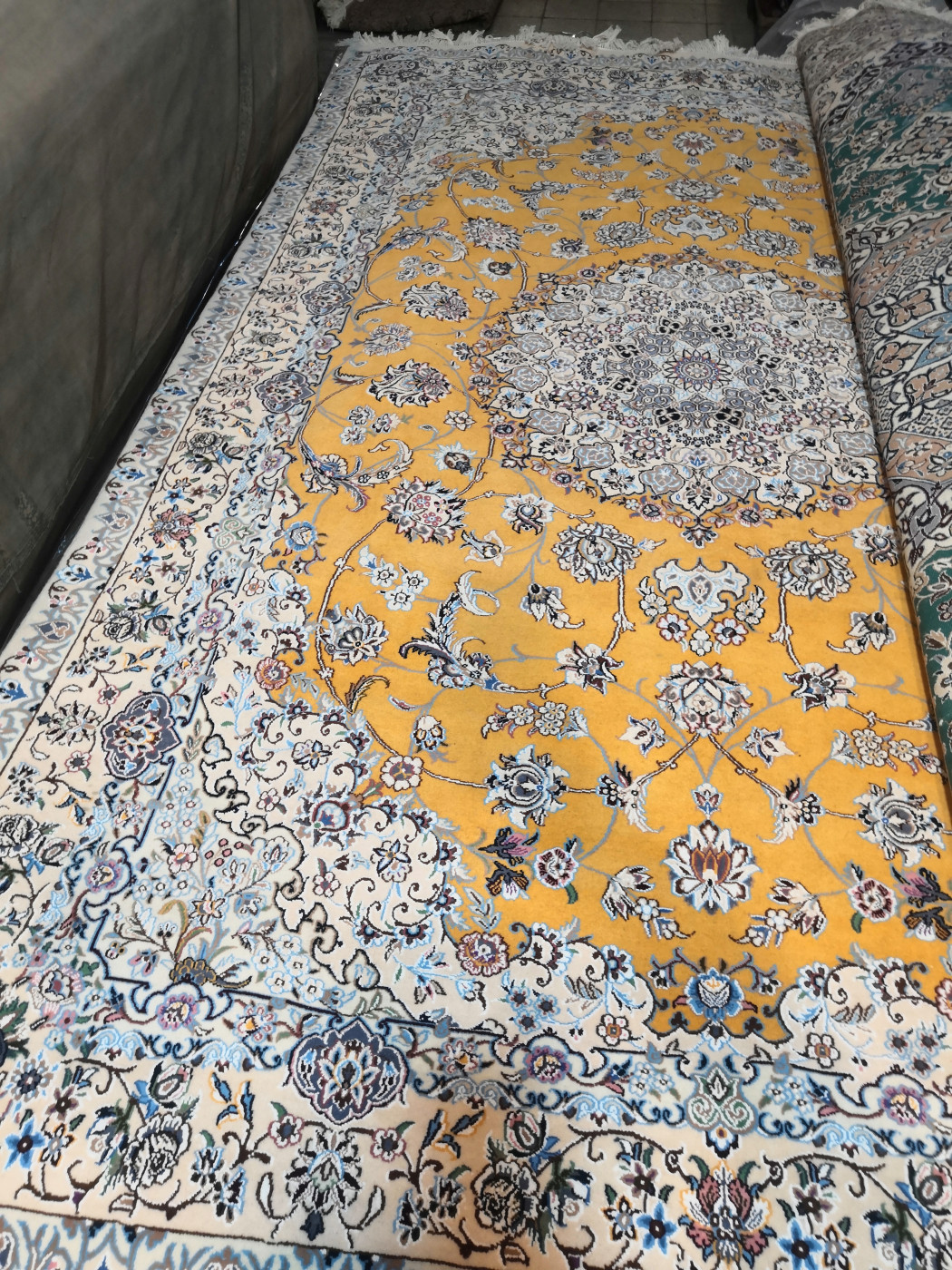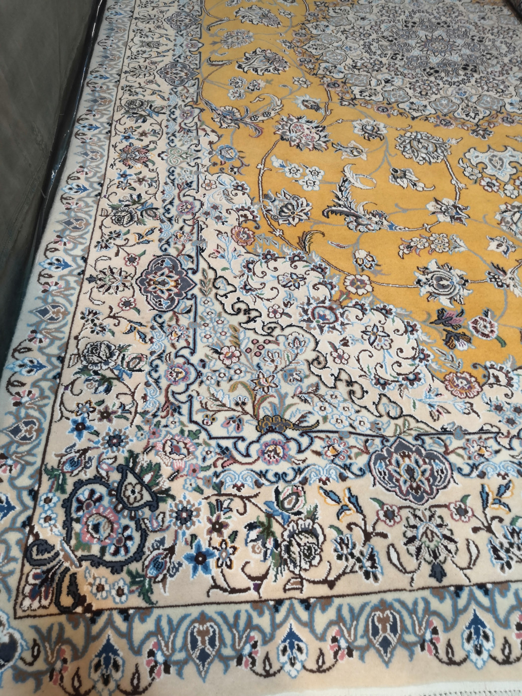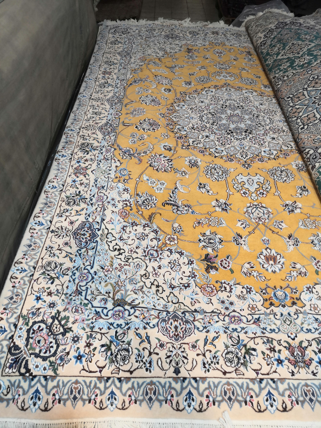 فرش دستباف شش متری نایین (نقشه لچک ترنج طلایی)