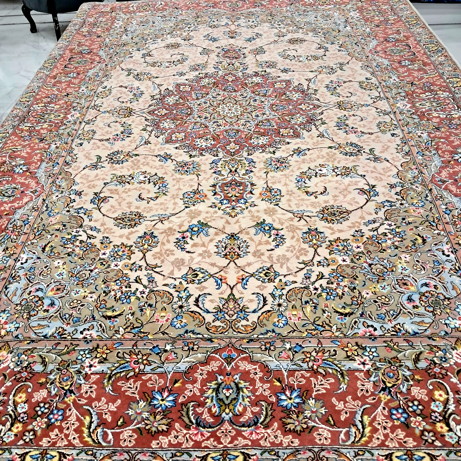 فرش دستباف جفت شش متری کاشان (نقشه لچک ترنج نسکافه ای)