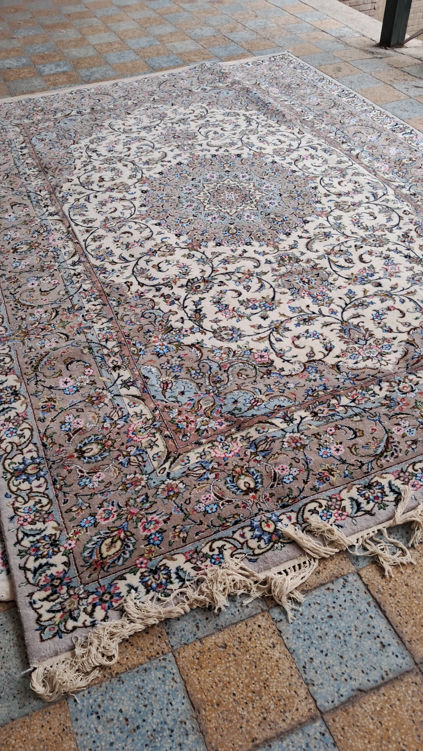 فرش دستباف جفت نه متری کاشان (نقشه لچک ترنج کرم)