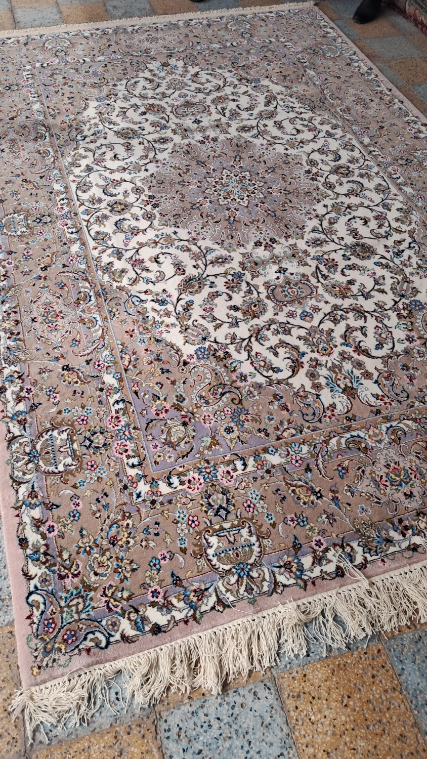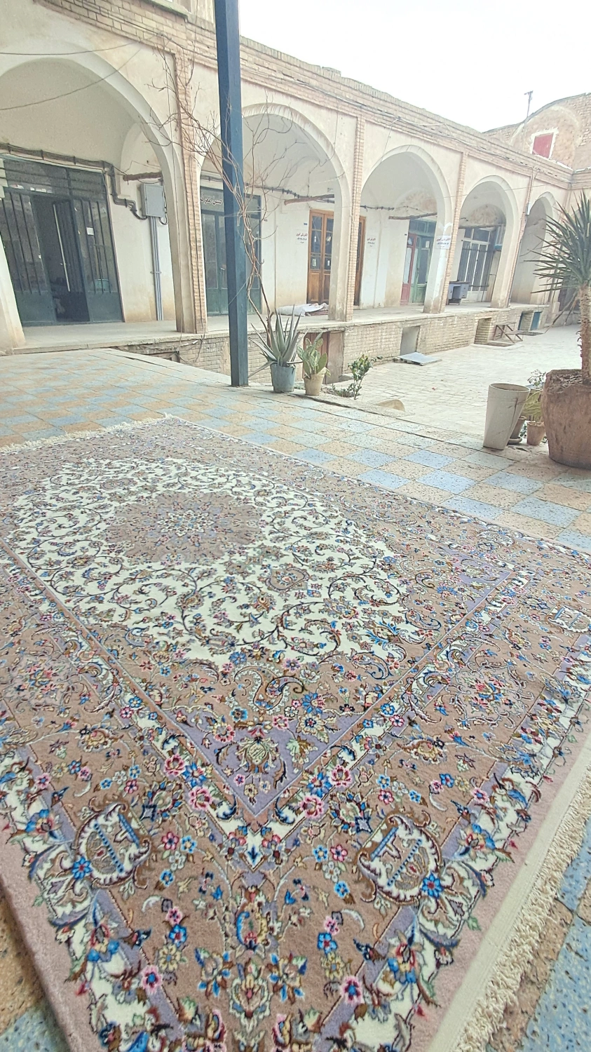 فرش دستباف جفت شش متری کاشان (نقشه لچک ترنج کرم)