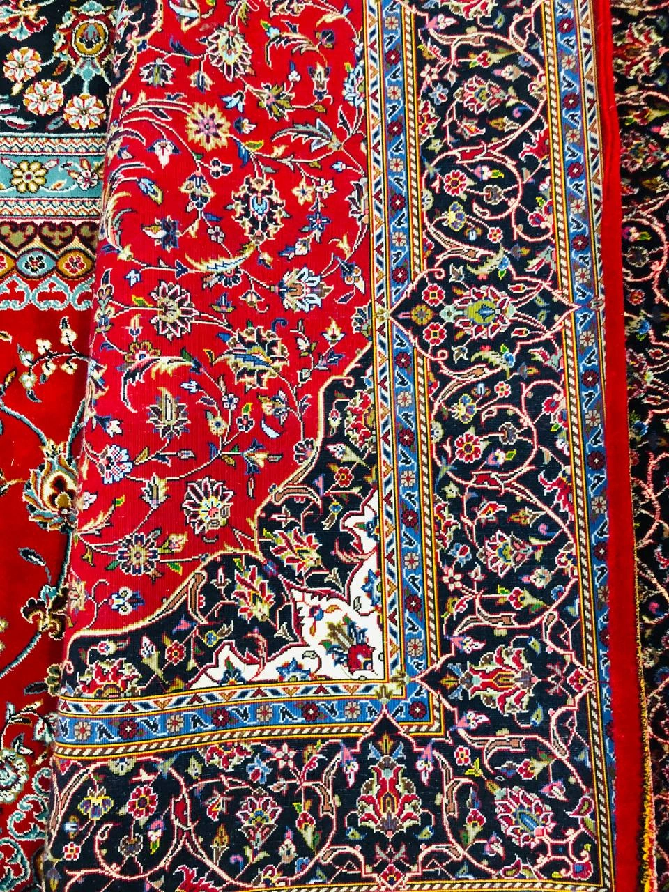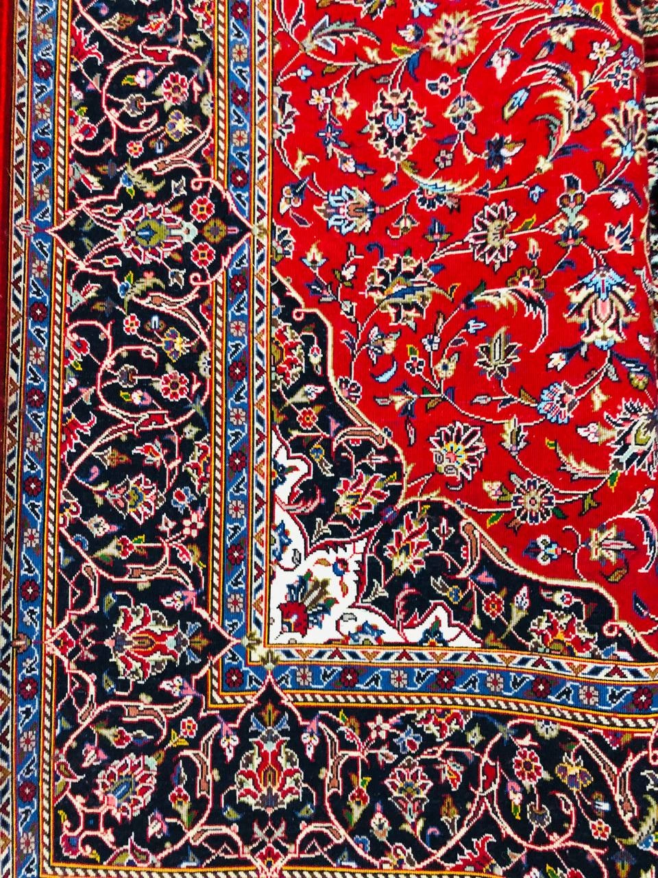 فرش دستباف قالیچه کاشان (نقشه لچک ترنج لاکی)
