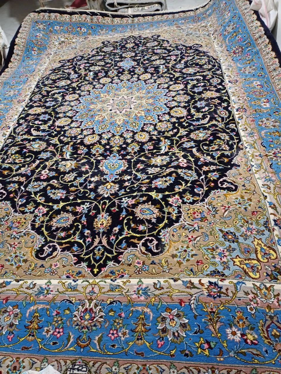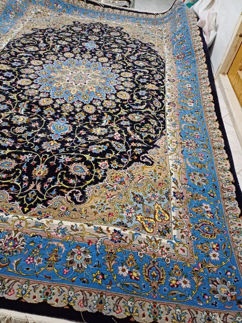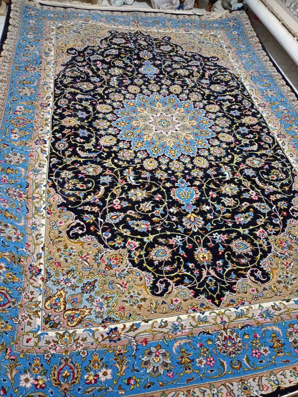 فرش دستباف جفت نه متری کاشان (نقشه لچک ترنج سرمهای)