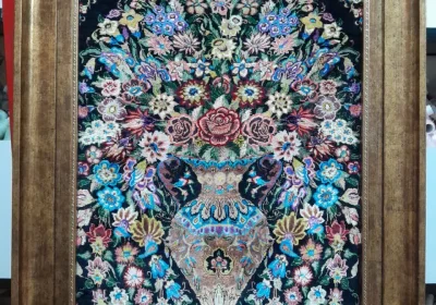 تابلو فرش دستباف تبریز خونه مادربزرگ قاب TV چله و گل ابریشم…