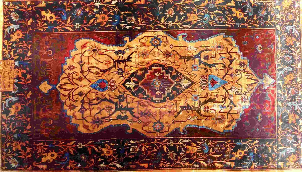 تصویر فرشی با طرح مشهور دوران صفوی به نام گلدانی