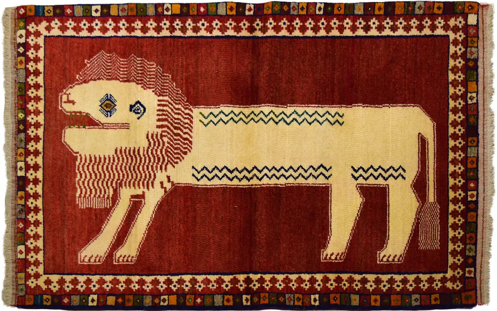 نخستین حیوانی که باید به آن اشاره کرد، چیزی نیست جز شیر!. برای سالهاست که شیر نماد ایران و بخشی از هویت ایرانی است. این موجود که نمادی از قدرت و اقتدار است بارها بر روی انواع دستبافتها از گبههای عشایری تا فرشهای ابریشمی کاشان تکرار شده است.