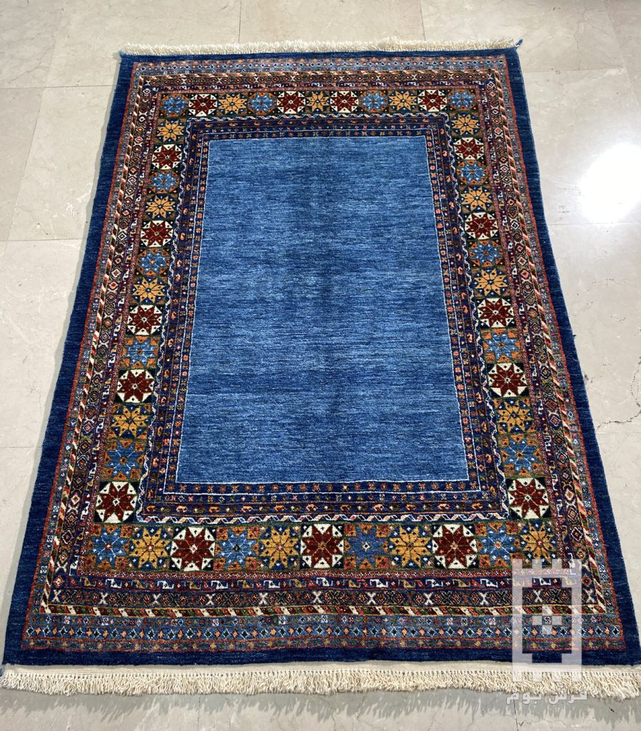 فرش دستباف جفت قالیچه خراسان (نقشه کف ساده آبی)