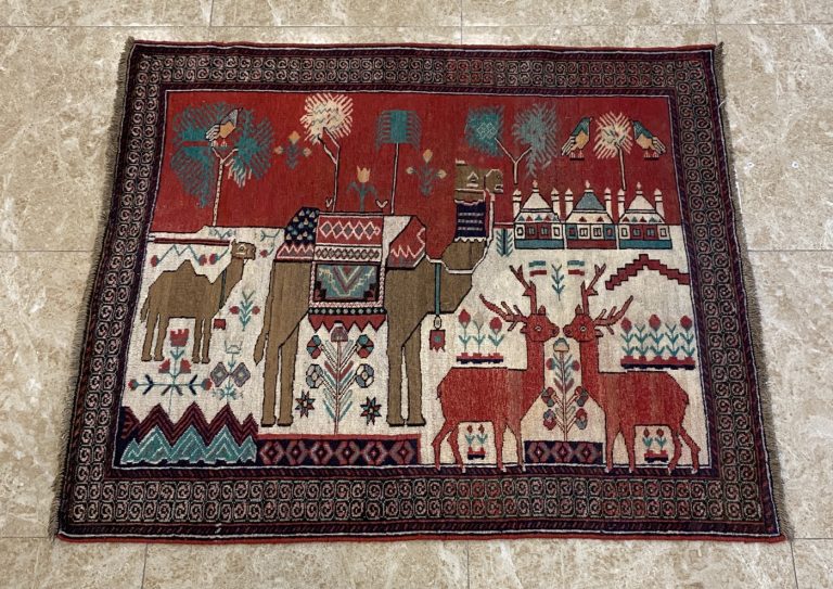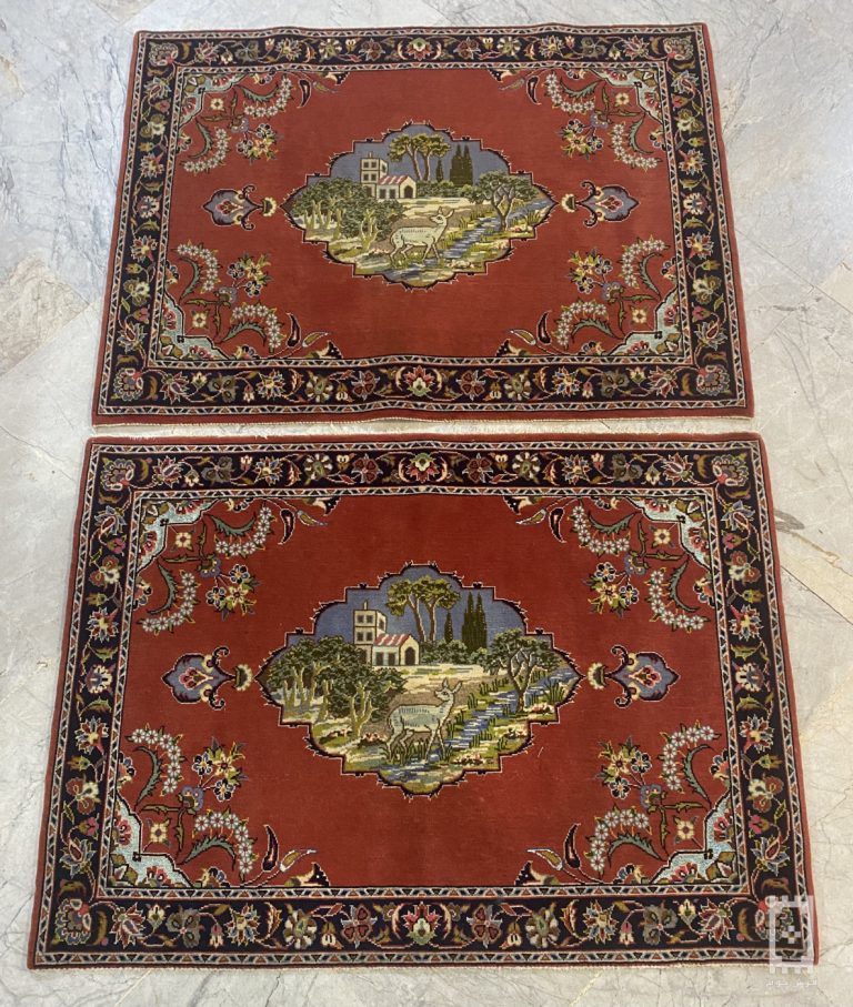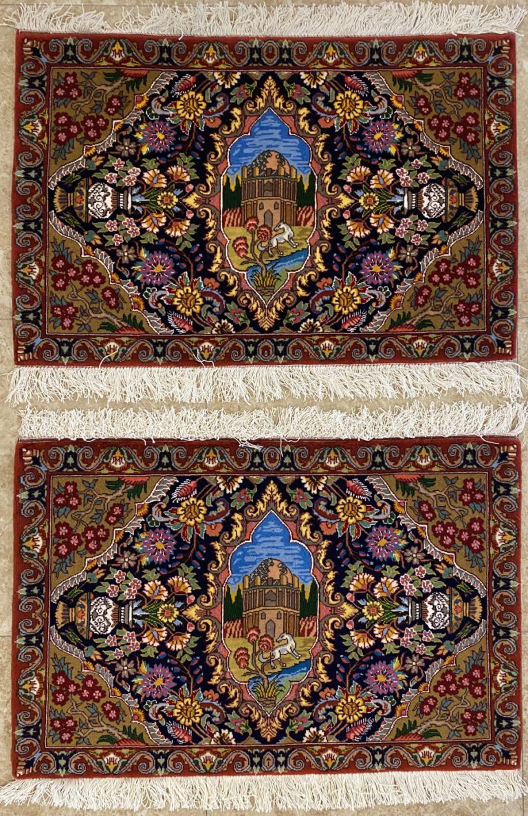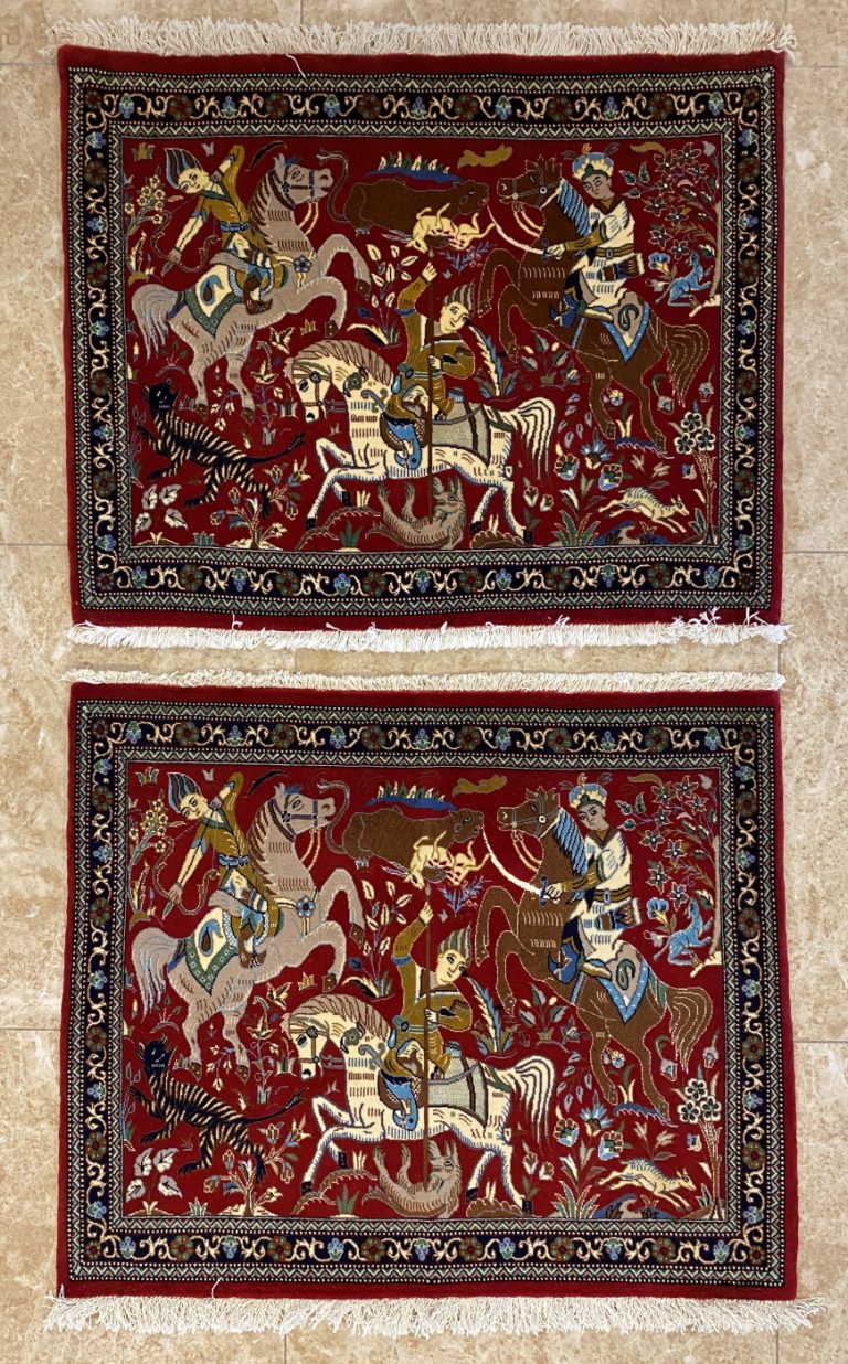 فرش دستباف جفت ذرع و چارک قم (نقشه شکارگاه لاکی)