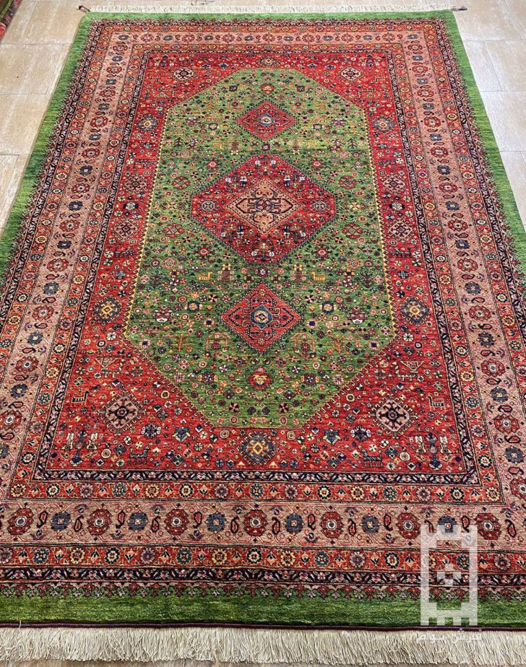 فرش دستباف شش متری قشقایی (نقشه لچک ترنج سبز)