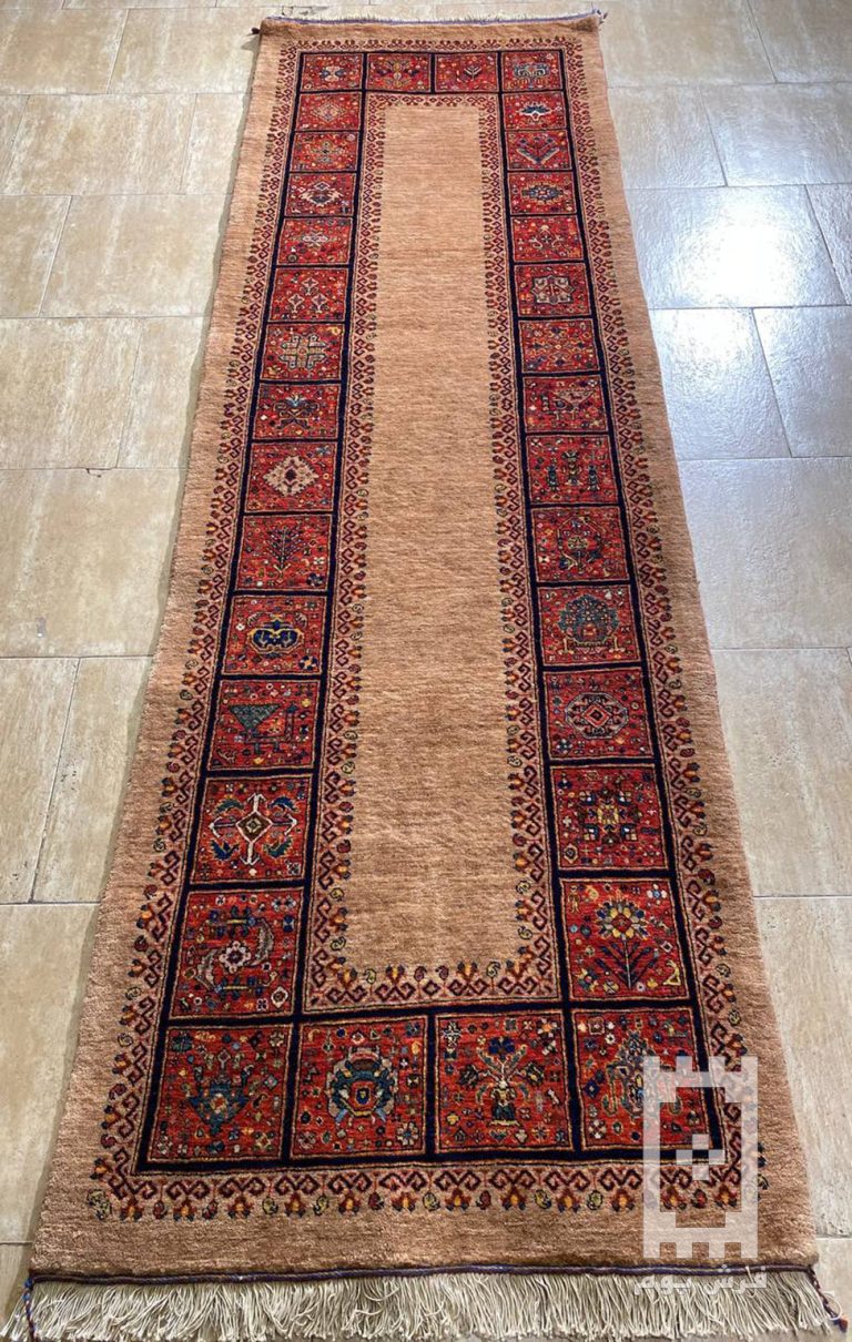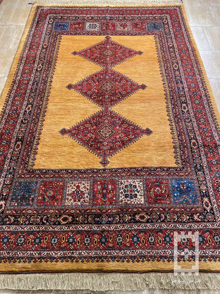 فرش دستباف شش متری قشقایی (نقشه سه ترنج زرد)