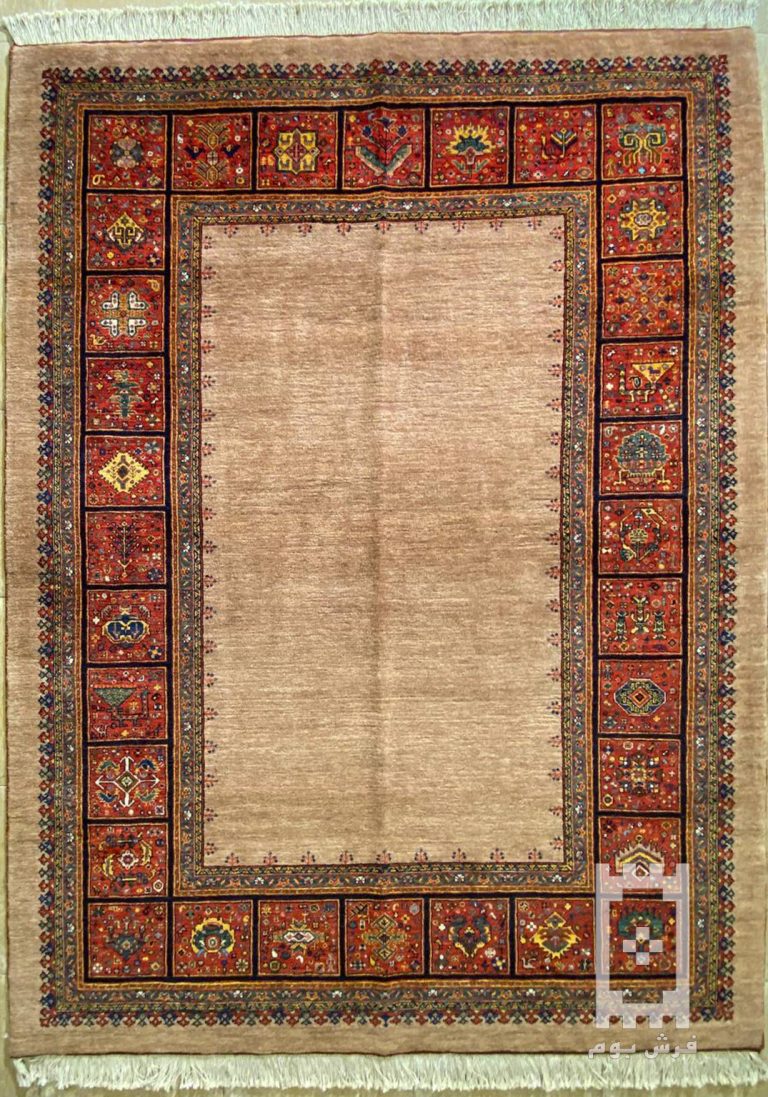 فرش دستباف کناره قشقایی (نقشه کف ساده نسکافه ای)