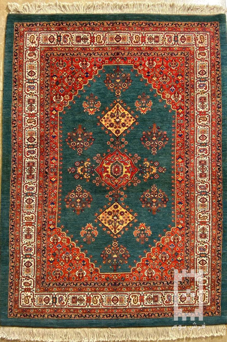 فرش دستباف قالیچه قشقایی (نقشه سه ترنج سبز)
