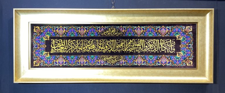 تابلو فرش دستباف ذرع و چارک قم (نقشه آیه سبز)