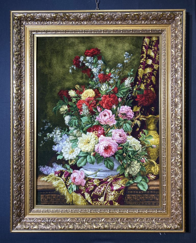 تابلو فرش دستباف پشتی تبریز (نقشه گلدانی الوان)