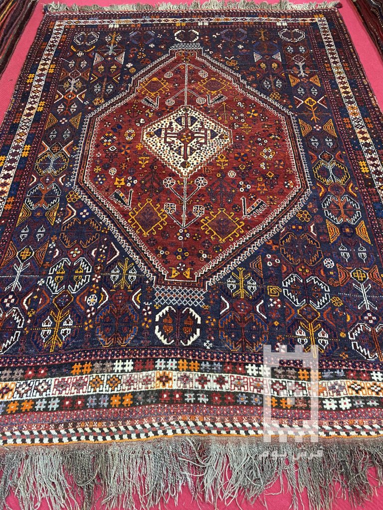 فرش دستباف پرده شیراز (نقشه سه ترنج لاکی)