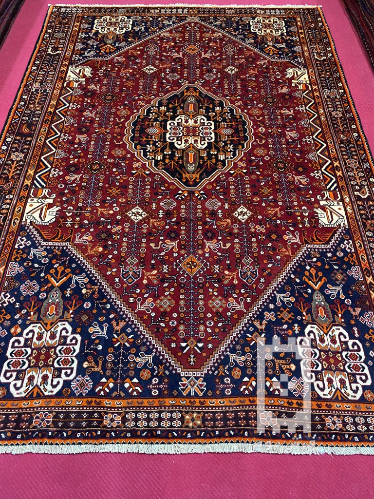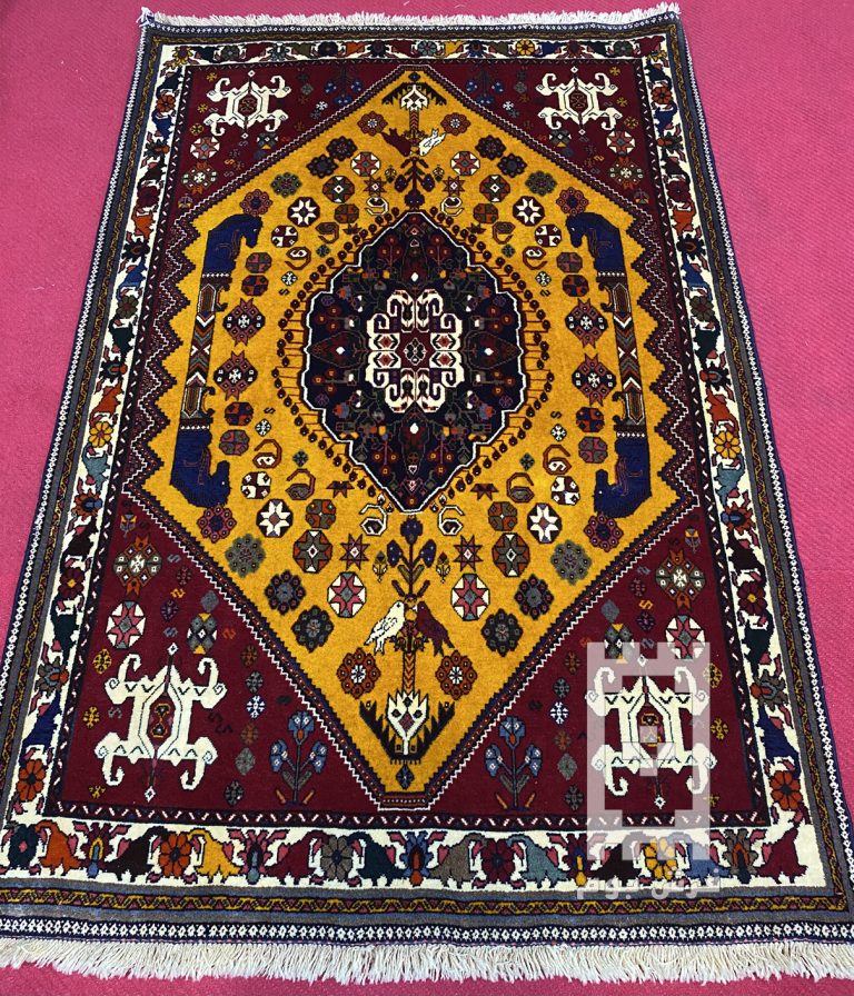 فرش دستباف قالیچه شیراز (نقشه لچک ترنج زرد)