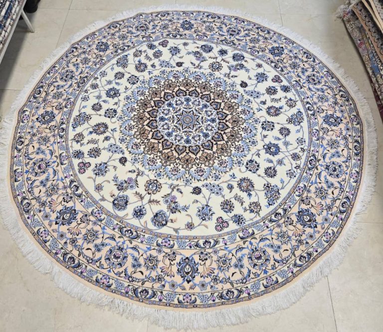 فرش دستباف گرد نایین (نقشه ترنج دار کرم)