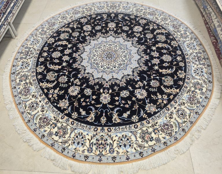 فرش دستباف گرد نایین (نقشه ترنج دار سرمهای)