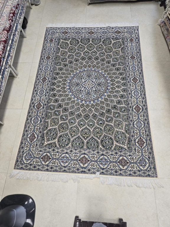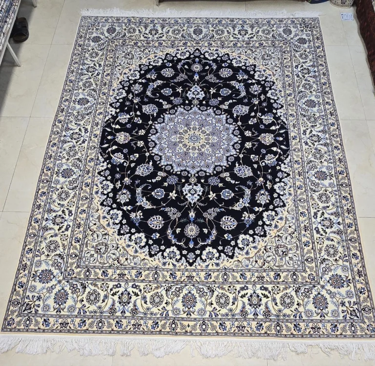 فرش دستباف شش متری نایین (نقشه لچک ترنج سرمهای)