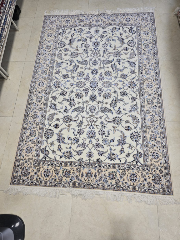 فرش دستباف شش متری نایین (نقشه لچک ترنج کرم)