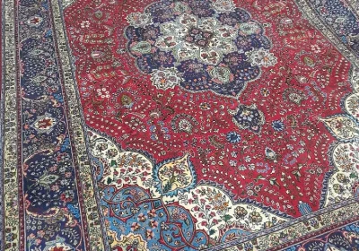 فرش دستباف نه متری تبریز (نقشه لچک ترنج لاکی)