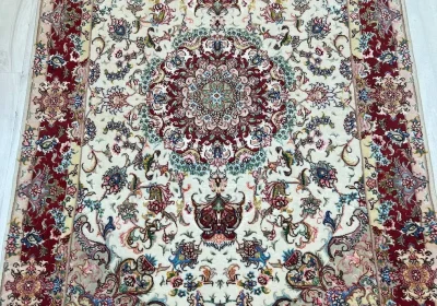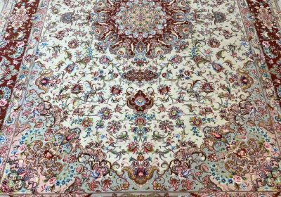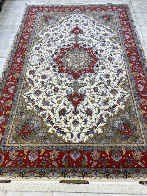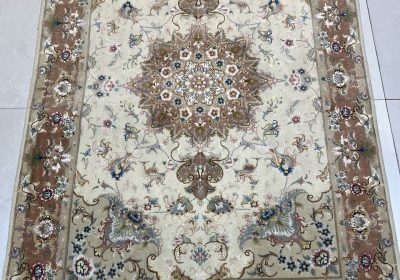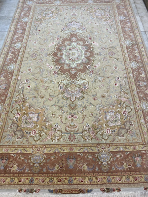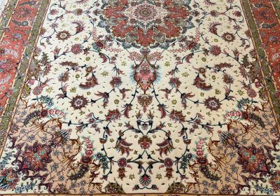 فرش دستباف شش متری تبریز (نقشه لچک ترنج کرم)