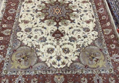 فرش دستباف شش متری مشهد (نقشه لچک ترنج کرم)