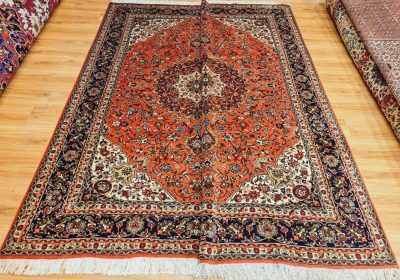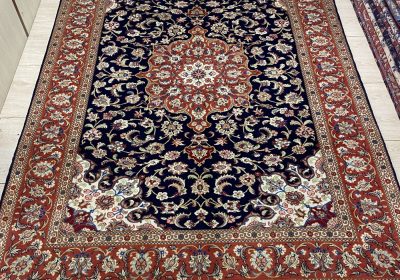 فرش دستباف شش متری قم (نقشه لچک ترنج آبی)