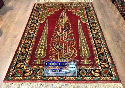 فرش دستباف قالیچه قم (نقشه لچک ترنج لاکی)