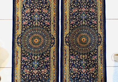 فرش دستباف ذرع و نیم قم (نقشه ترنج دار آبی)