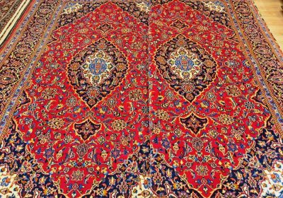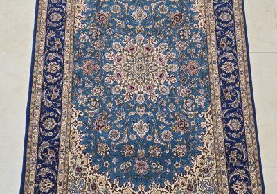 فرش دستباف شش متری قم (نقشه لچک ترنج آبی)